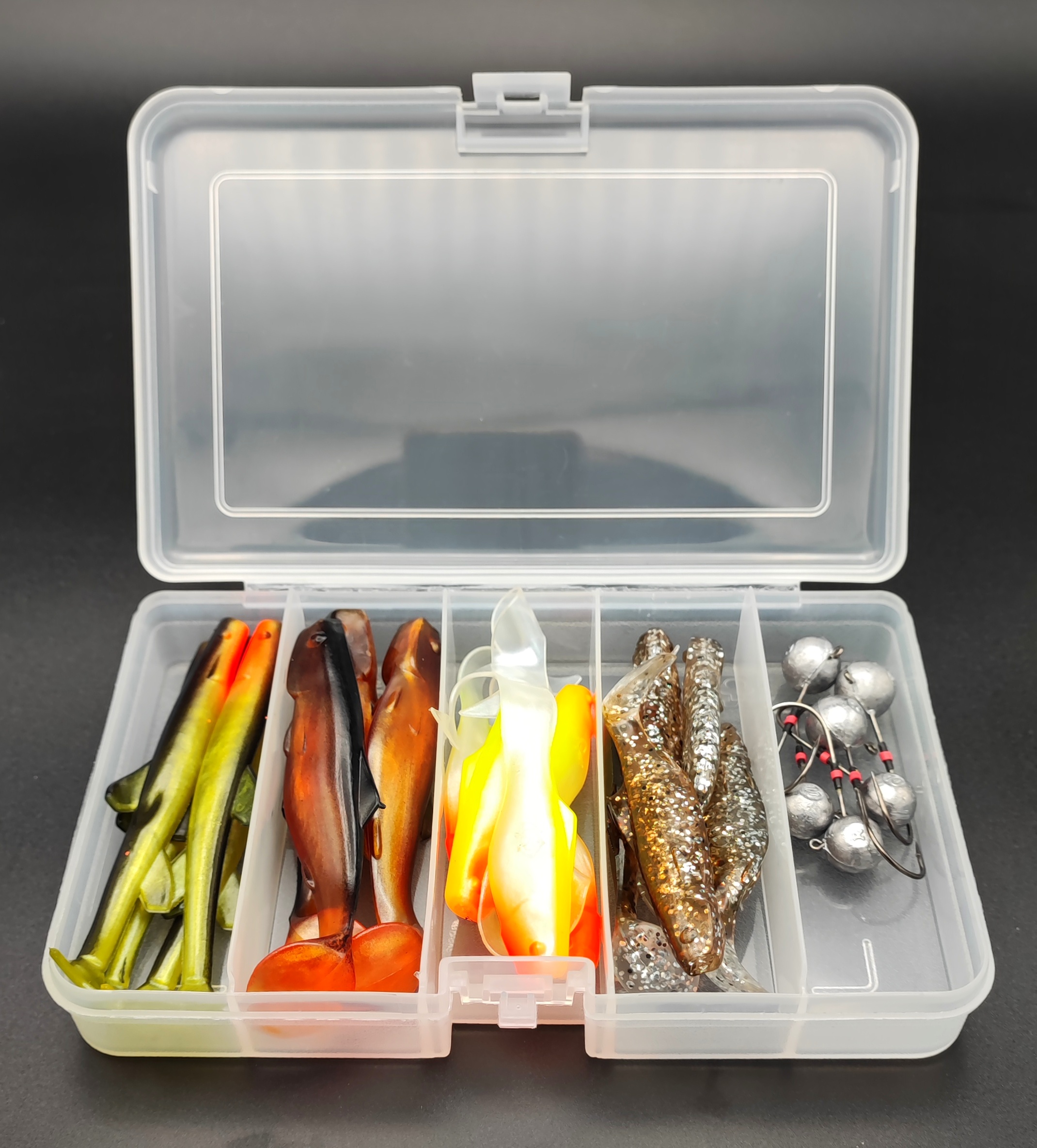 Joonaksen rakentama jigilajitelma kuhan jigikalastukseen tummassa vedessä. Valmis setti, joka pitää sisällään parhaita Orka -ottijigejä ja Ruthless Slim Keeper -jigipäitä!