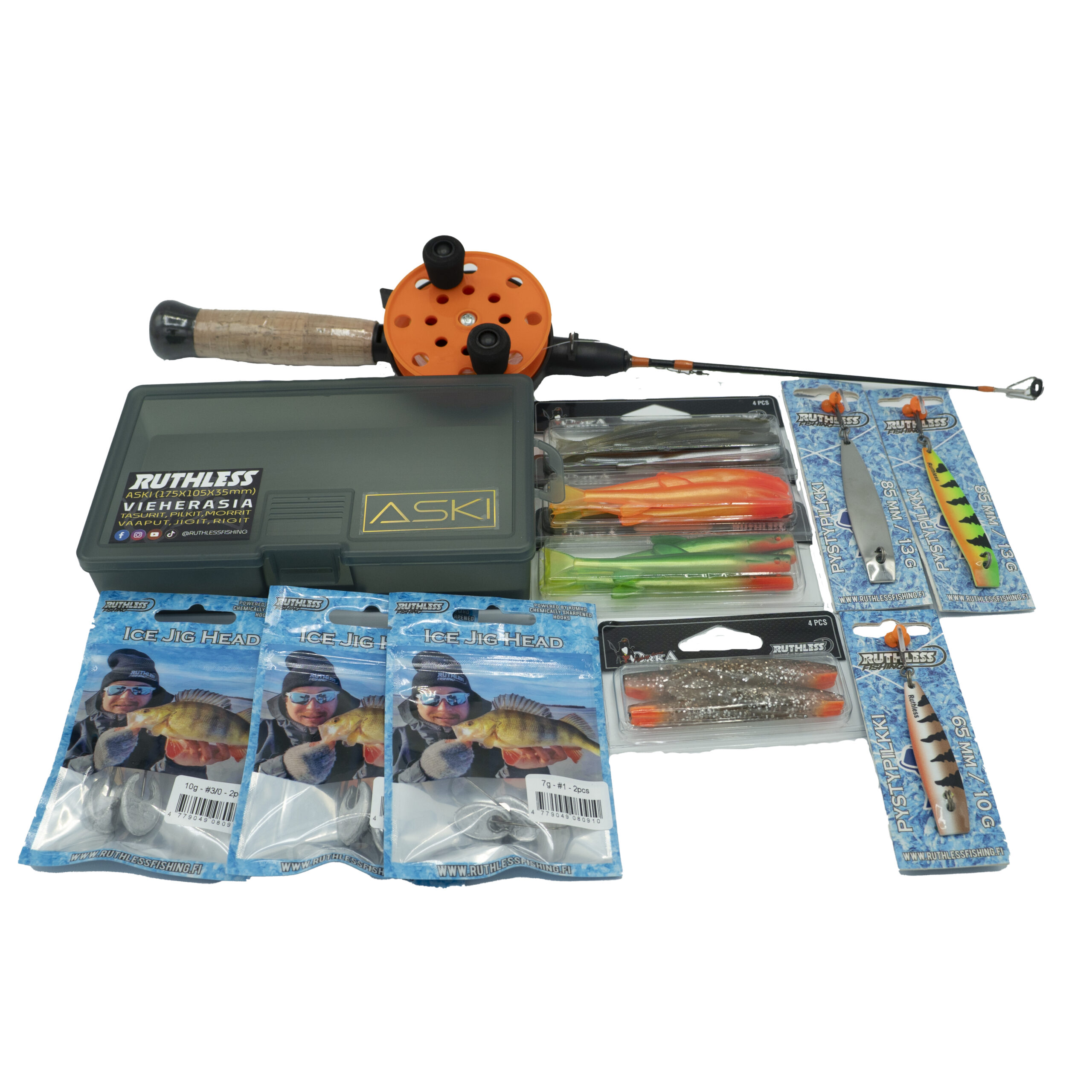 Olet sitten aloitteleva tai kokenut pilkkijä niin tästä Joonaksen kasaamasta pilkkisetistä löydät kaiken tarpeellisen kuhanpilkintään. Erinomainen valinta esimerkiksi lahjaksi. Sisältää pilkkivavan siimoineen sekä pystypilkit, jigit ottiväreissä, jigipäät sekä titaanisen pilkkiperukkeen. Kaikki nämä tulevat laadukkaassa Ruthless ASKI vieherasiassa.